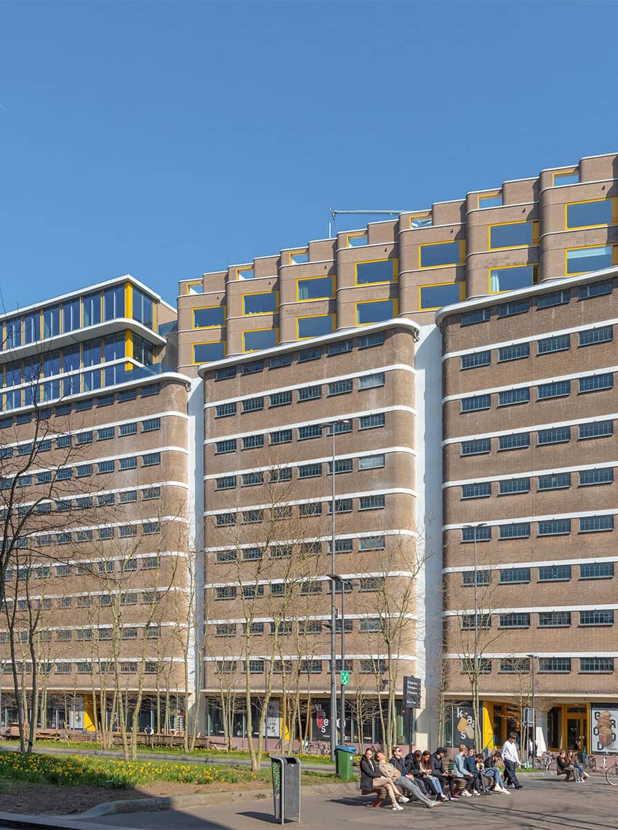 Het karakteristieke Veemgebouw met zijn afgeronde hoeken, direct tegen de Beukenlaan bruist op elke verdieping!